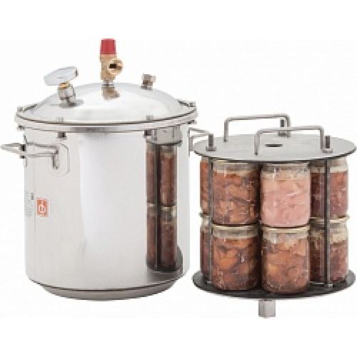 Идеальным решением для ускорения процесса заготовки домашней консервации станет автоклав "Малыш ГазНерж У" на 22 л. Для изготовления аппарата используется пищевая нержавейка, обеспечивающая устойчивость к ударам и прочим повреждениям. Он предназначен для приготовления вкусных и натуральных консервов из овощей, фруктов, мяса, птицы и рыбы. Используется на газовой плите, горелке или даже костре.